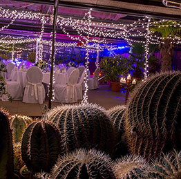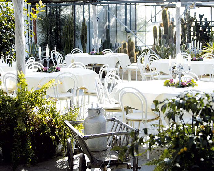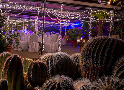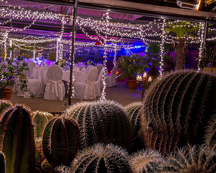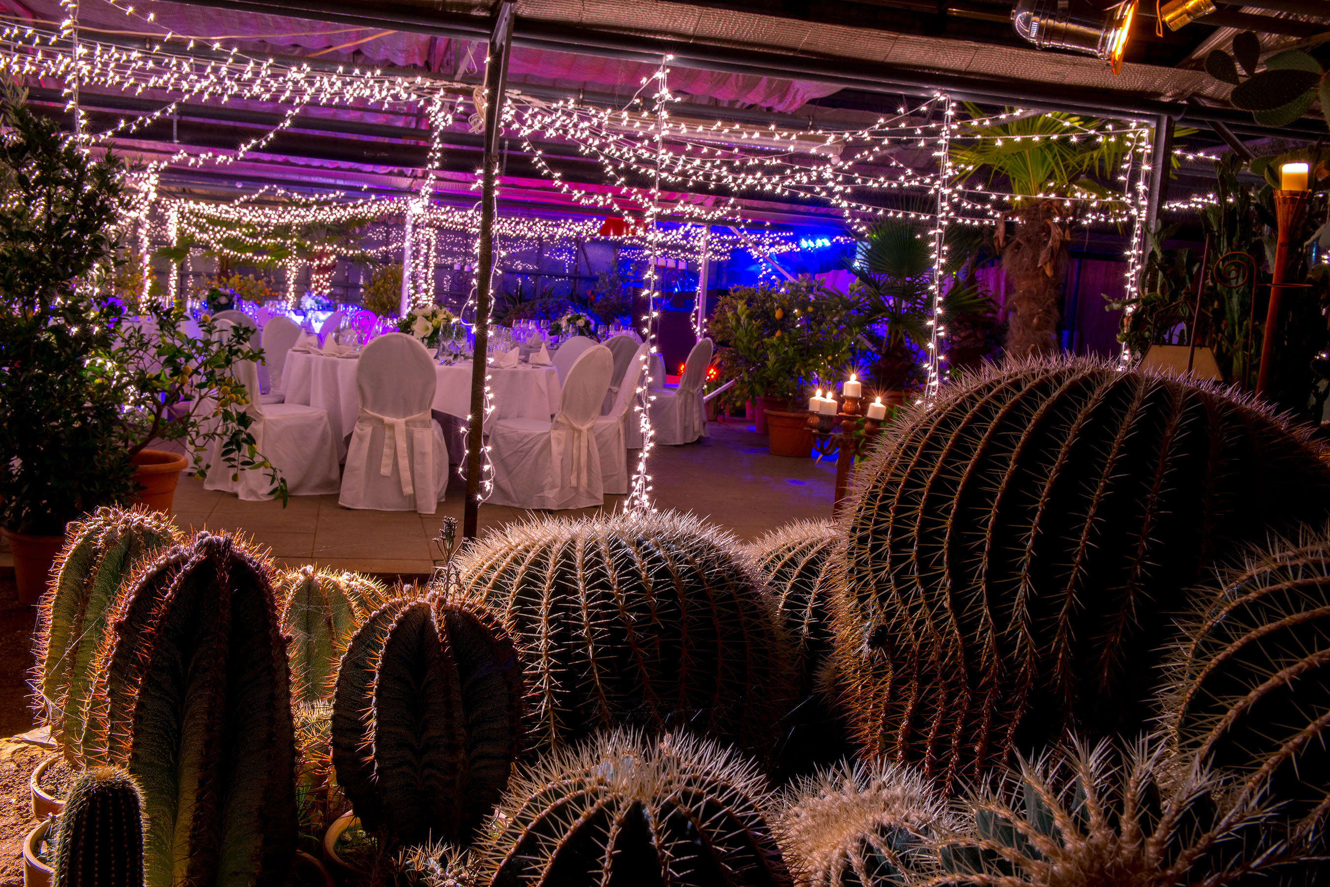 Das Biodom ist ein Glashaus im Herzen einer romantisch angelegten Gärtnereilandschaft. Wir vermieten diese Räumlichkeiten für private Veranstaltungen. Hier können Sie Ihre Hochzeit, Jubiläen und andere Feierlichkeiten zwischen Teich-, Kakteen- und Dschungellandschaften zelebrieren. Die liebevoll angelegten Innen- wie Außenbereiche, ob Natursteinbars, Schwanenteich oder Bambuswald - unterstützen den harmonischen Charakter Ihres Festes.