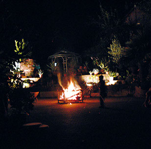 Angebote von eigenem Wein, Apfelsaft, kleiner Vespertüte